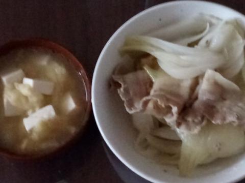 味噌汁:豆腐と油揚げで、味噌の味じゃない煤けた味がする