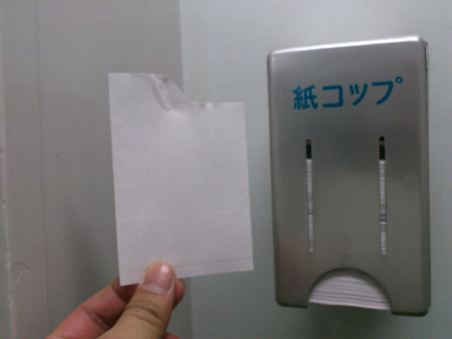 昔の国鉄の電車にボタン押すと水が出てくる機械があってそのとなりにこの紙が置いてあって中に水を入れて飲むと